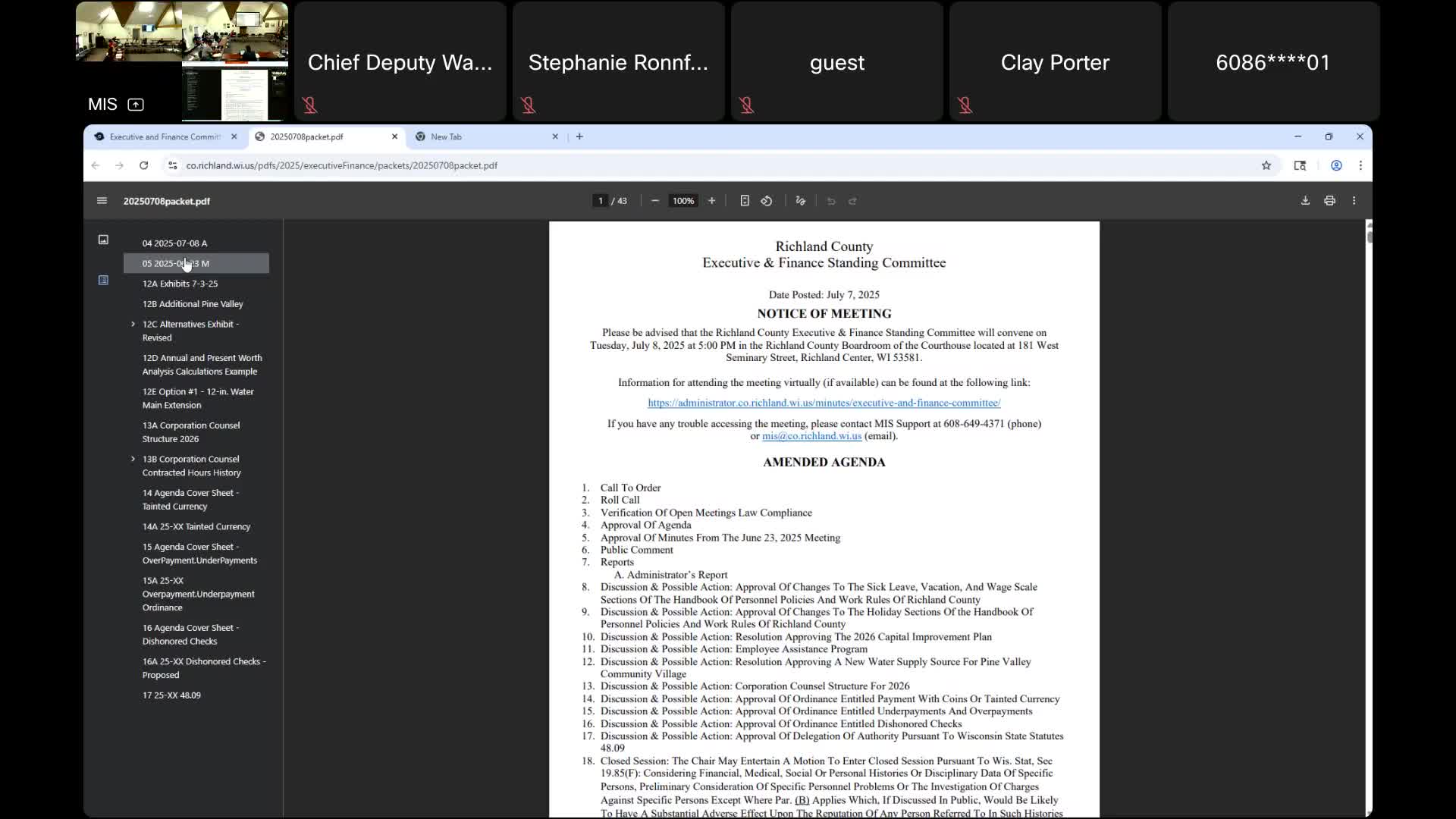 The executive and finance committee voted to forward to the county board a proposal to begin an employee assistance program (EAP) serving full-time and ambulance personnel; the county would cover costs through ARPA funds for 2025 and add it to the 2026 budget.