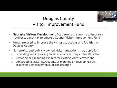 The recommendations were prepared by the seven-member Visitors Promotion Council and county staff after a competitive application cycle. Catherine Hall, county staff who administers the program, said the fund is authorized by state statute: "The Nebraska Visitors Development Act allows for the county to collect a hotel occupancy tax and create a county visitor improvement fund," and that Douglas County may collect a 5 percent hotel tax with 2 percent available for improvement funds.