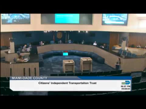 Gabriela Serrado with the Department of Transportation and Public Works briefed the Citizens Independent Transportation Trust on May 28 on progress in the Northeast Corridor project, reporting the county moved from project development into the federal engineering phase in late 2024 and that the project is in the Federal Transit Administration (FTA) Capital Investment Grants (New Starts) pipeline.