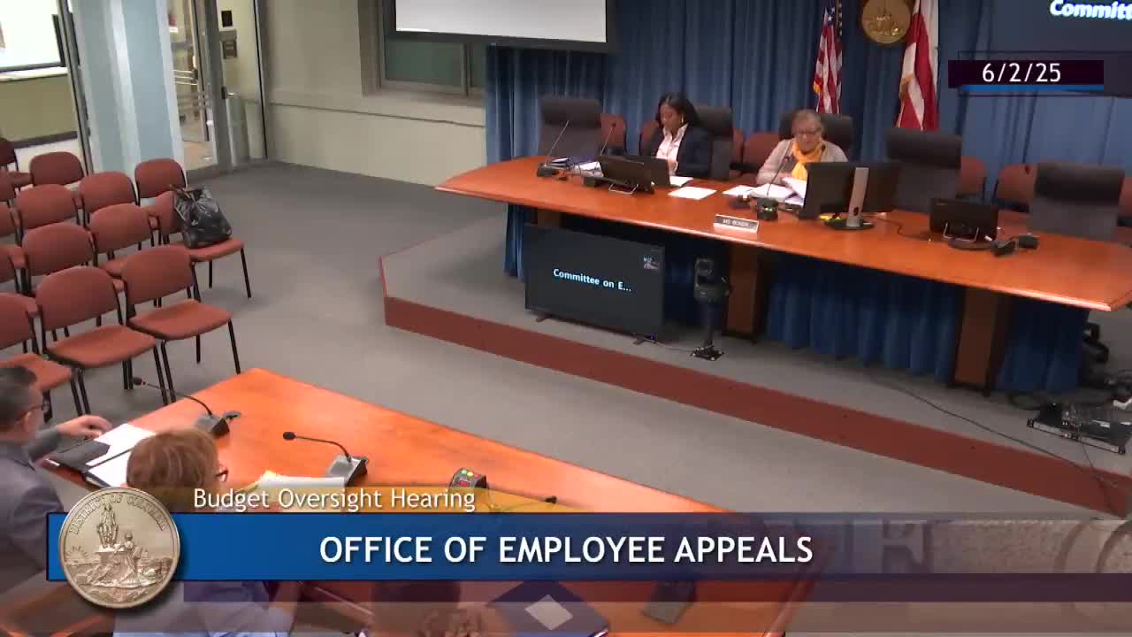 The Office of Employee Appeals told the committee its FY26 proposal would fund a vacant senior administrative assistant and requested one‑time funding to modernize case tracking and support legal training, saying appeals are more complex and hearings longer.