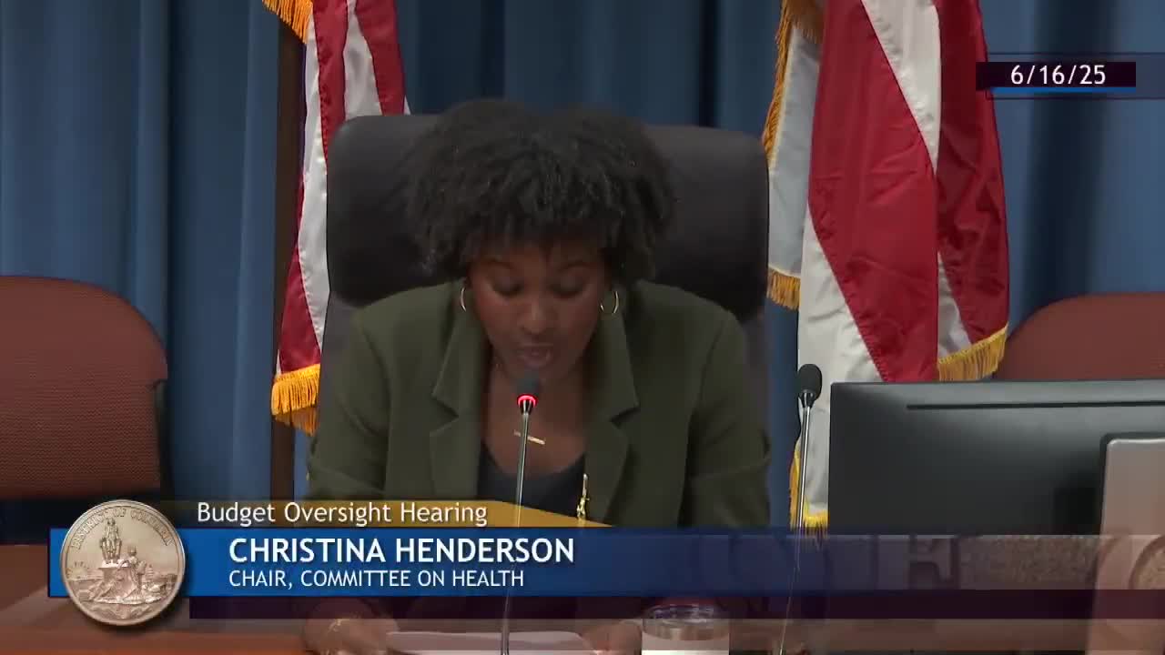 Chair Christina Henderson opened the Committee on Health’s June 16 oversight hearing for DC Health’s FY26 budget and said the committee would consider the agency’s budget chapter and public testimony recorded earlier in June.