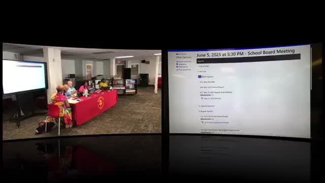 Key votes at a glance: - Consent agenda — motion to approve; voice vote; outcome: approved. - Amended agenda (to add item on governor’s $2,000 teacher bonus) — motion to approve amendment; voice vote; outcome: approved. - Food service budget — motion to approve; voice vote; outcome: approved. - 2025–26 school year budget and salary scales (includes state-mandated teacher salary increase; 3% raise for noncertified staff) — motion to approve; voice vote; outcome: approved. - Consolidated application FY2026 (Title I, special education, federal grants) — motion to approve; voice vote; outcome: approved. - Special-called meeting to approve 2024–25 budget amendments — motion to approve June 26 at 1:00 p.m.; voice vote; outcome: approved.