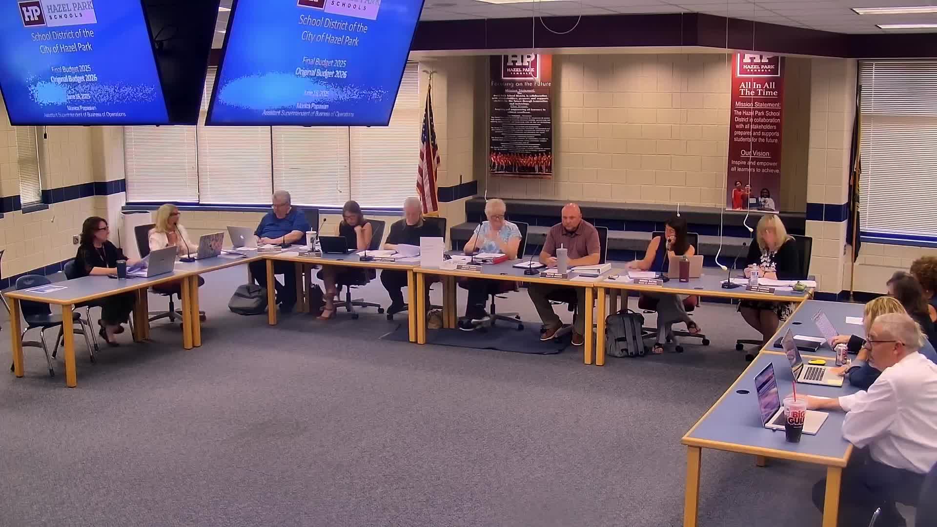 At a public business meeting of the Hazel Park School District Board of Education, district finance staff presented preliminary figures showing a $1,326,000 deficit for the current year and described a rollover 2025–26 budget that would start with a multimillion-dollar shortfall.