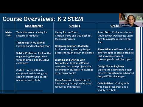 Ms. Durham, an instructional coach who worked with Berger on the revisions, told the committee the curriculum ties STEM tasks to core classroom material (for example CKLA reading lessons) and uses low‑tech materials as well as iPads. Examples cited included bridge‑building challenges using popsicle sticks, tape and paper and use of Kiva planks and Legos. Committee members asked whether the STEM class was solely technology; presenters clarified the K–8 STEM special includes both technology and engineering and blends digital and non‑digital activities.
