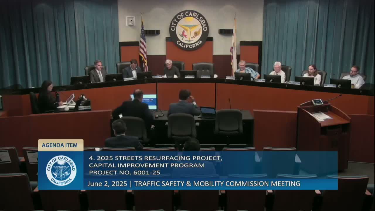 City engineers presented the 2025 Streets Resurfacing Project and asked the commission to support staff recommendations to City Council. Jose Nogide, engineering manager, and Eddie Wills, associate engineer, said the program will cover roughly 68 miles of resurfacing as part of the city's pavement management program, using a mix of slurry seal (the larger portion) and overlay where pavement condition requires it.