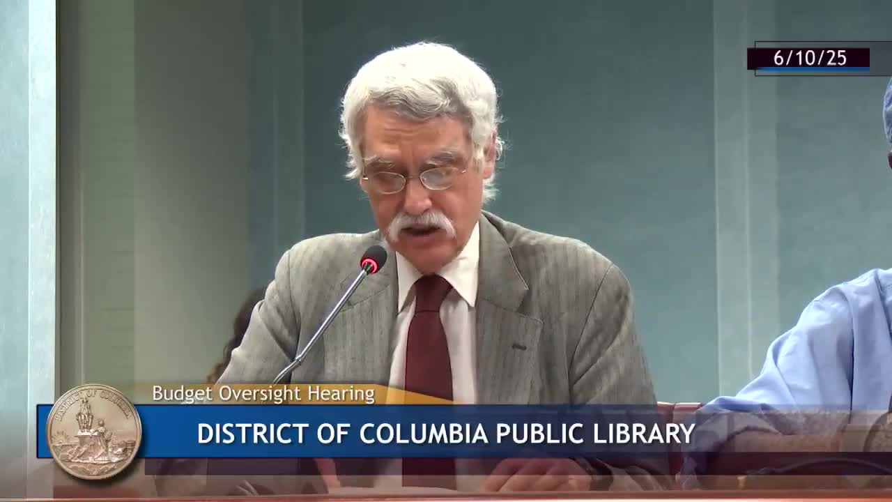 The Committee on Human Services heard testimony Tuesday, June 10, 2025, on the District of Columbia Public Library's proposed fiscal year 2026 budget and FY25 supplemental capital plan, where witnesses said operating cuts could force neighborhood branches to reduce hours, the system's collections to shrink and reopening plans for the Southeast branch to face staff and collection shortfalls.
