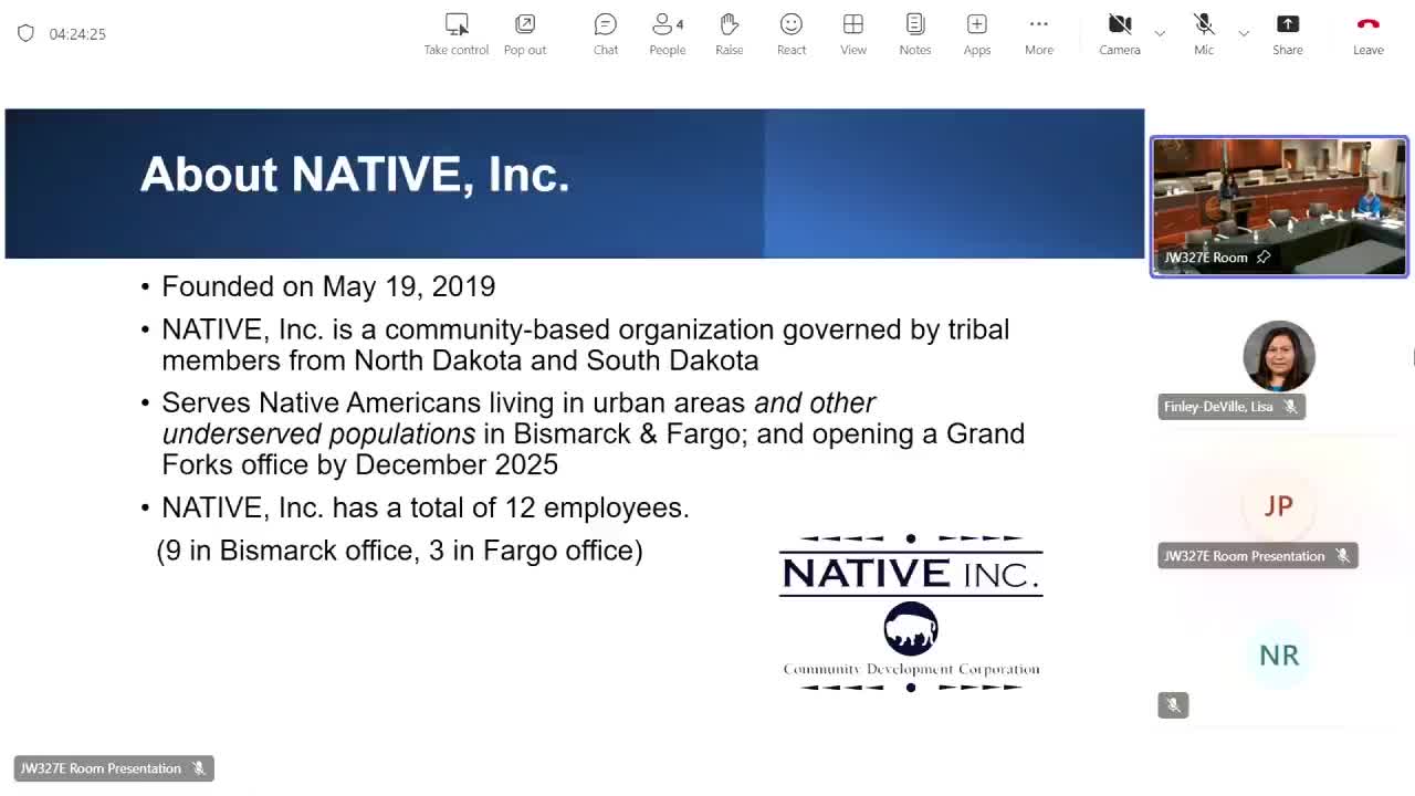 Native Inc., a Bismarck nonprofit serving urban Native communities, presented cultural, housing and economic programs to the committee and asked legislators to consider state support for a proposed $27 million Native cultural center that would include programming space, ceremonial facilities and adjacent affordable housing.