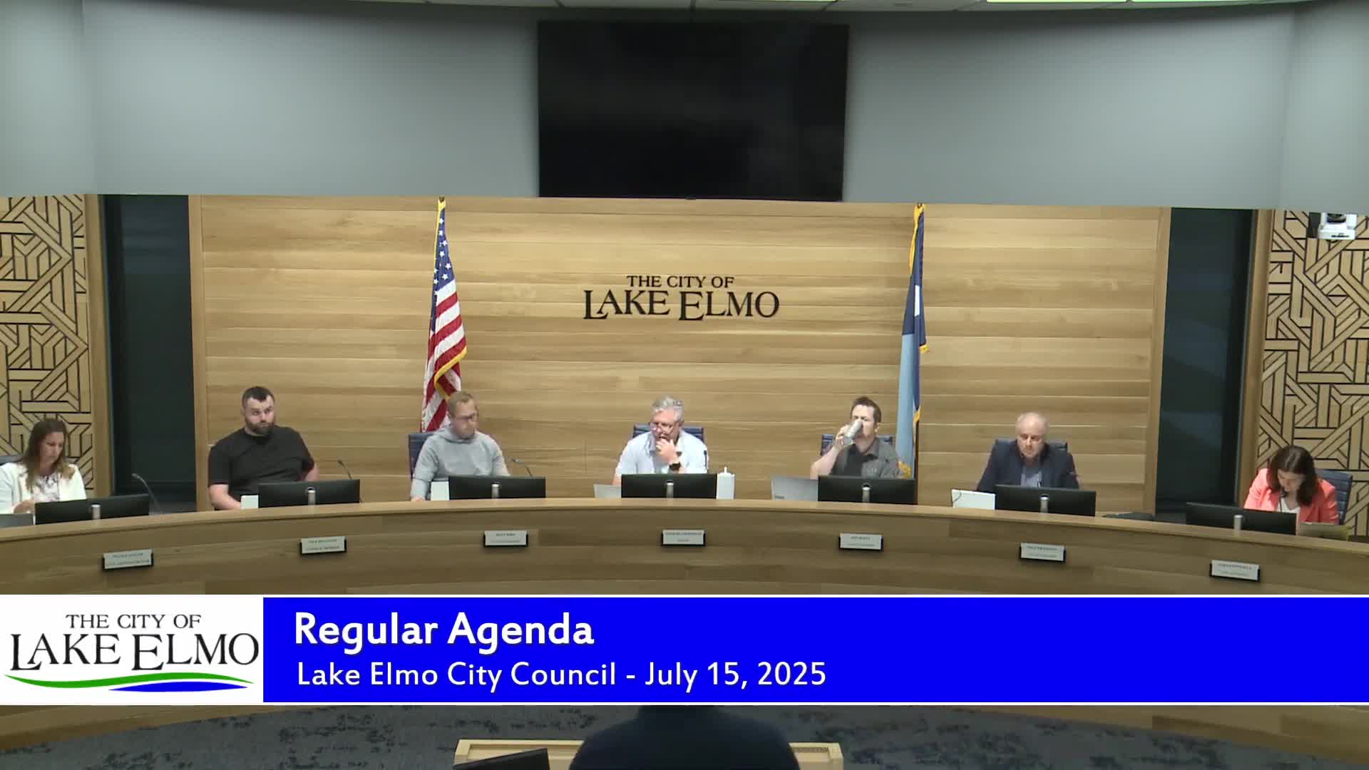 The Lake Elmo City Council on July 15 accepted bids and ordered contract award for the I‑94 Lift Station force-main improvements (Resolution 2025‑055), accepting a low bid of $1,248,683 from A1 Excavating LLC.