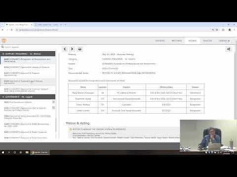 The meeting also included two confidential settlement items approved by motion; the board approved those motions in closed vote as listed on the agenda (motions passed).