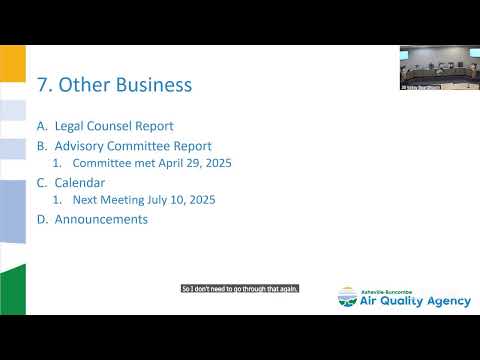 Network performance: Staff reported 2025 year-to-date completeness of 97% for the BAM PM2.5 sampler and 95% for the ozone monitor at Bend Creek; staff noted the auto-calibration routine costs about one hour of data completeness each day on ozone instruments. The board praised field staff for maintaining the network and troubleshooting PurpleAir and EBAM units deployed to supplement regulatory monitors.