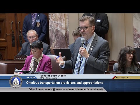 Senator Scott Dibble, chair of the Senate Transportation Committee, opened the debate by describing the measure as “the Omnibus Transportation Finance and Policy Bill,” and summarized the committee’s approach to meet legislatively assigned budget targets while preserving local road funding and advancing a mix of capital and policy items. The bill’s fiscal strategy included pausing some previously planned transfers and using new electric‑vehicle registration surcharges to backfill highway funds.