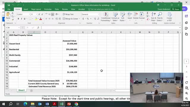 No formal action or vote was recorded during the discussion; the assessor said outreach plans would be revisited after final certification in August and when personal-property numbers are complete.