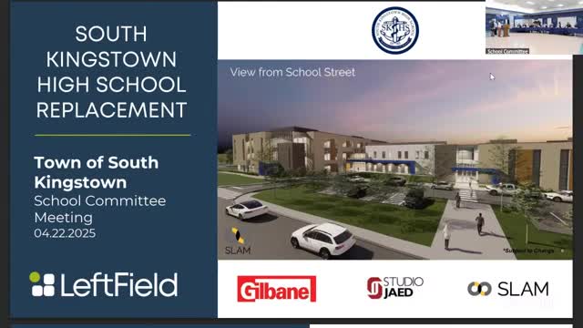 South Kingstown School Committee members heard a design-development update Wednesday from Left Field, SLAM Collaborative and Gilbane Construction on the new South Kingstown High School, with the project team saying construction would run through 2027 and that the team is working to improve the schedule.
