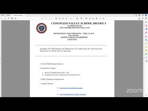 A lengthy discussion on April 30 about personnel‑file access divided the Conewago Valley Policy Subcommittee over how much individual board members should be able to review staff records.