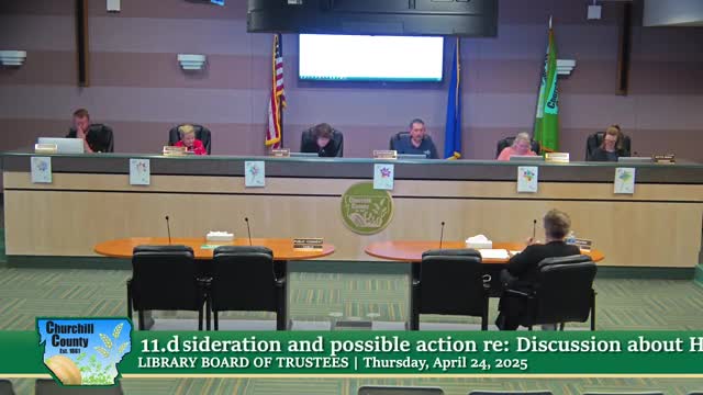 The Churchill County Library Board of Trustees voted to cap Hoopla checkouts at 15 per user per month and set per-item caps for audiobooks and ebooks after staff reported rising per-month costs and heavy local use; the library director will return with 30 days of updated data.