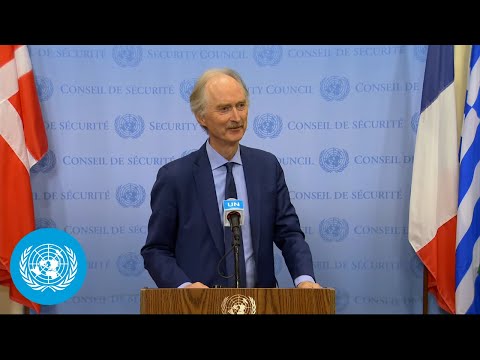 Speakers and attribution: The article attributes direct remarks only to speakers identified in the briefing, including Geir O. Pedersen and reporters who posed questions.