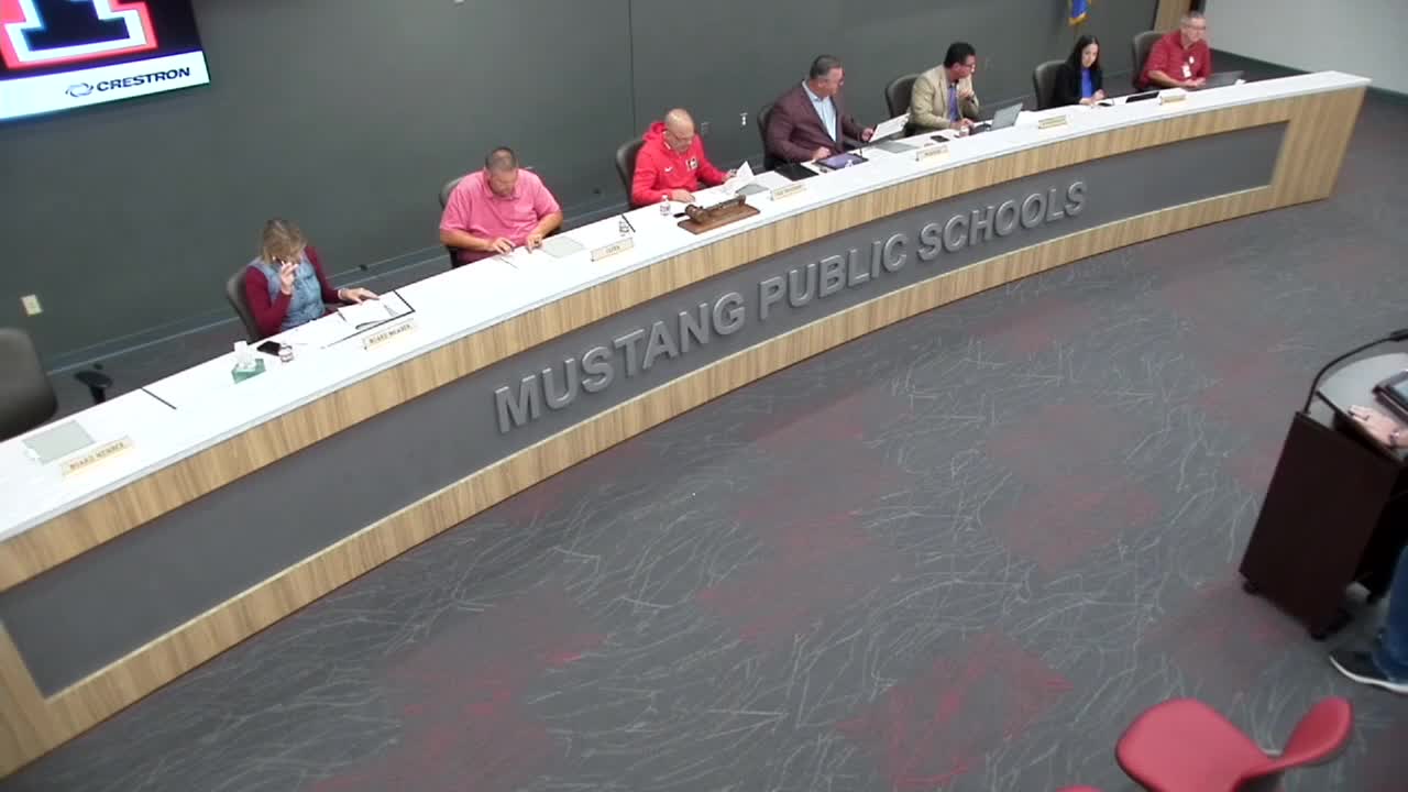 The Mustang Public Schools Board of Education voted to implement the teacher empowerment grant for the 2025–26 school year (item Q). The vote followed a public comment from a district teacher who said the program appears to benefit a small portion of staff and raised questions about evaluation standards and required work days.