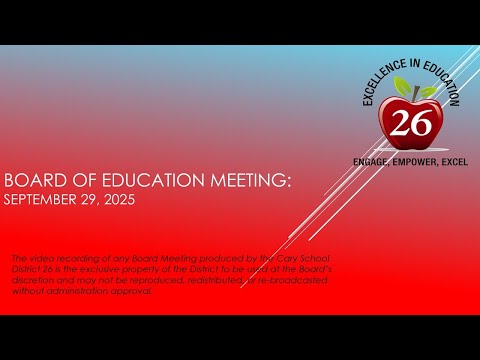 The Cary CCSD 26 Board of Education met Monday evening and covered a range of routine and policy items, including public comment on social-emotional screening, a curriculum update on a new benchmark assessment, the superintendent search, and approval of routine business and the treasurer's corrected report.