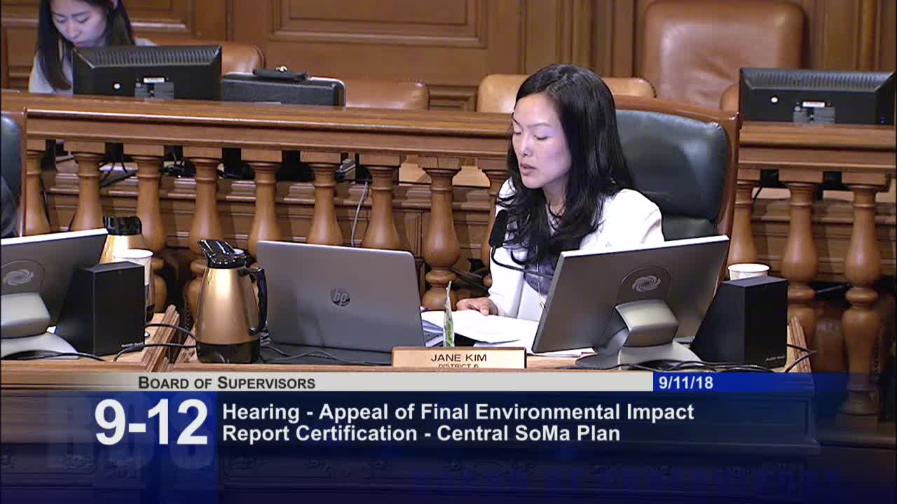 The Board of Supervisors voted to continue four appeals of the Final Environmental Impact Report (FEIR) for the proposed Central SoMa plan to Sept. 25 after Supervisor Kim, whose district includes parts of the plan area, requested additional time to work with appellants.