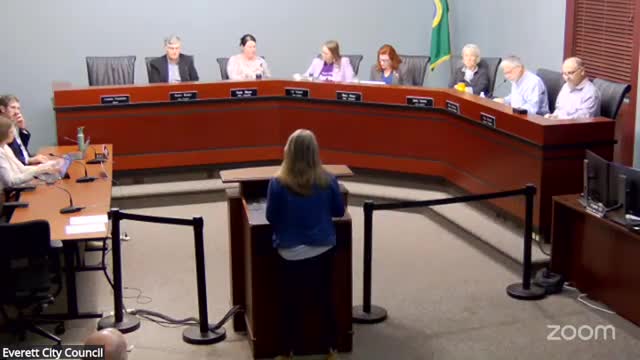The ordinance drew both support and opposition during public comment. Liz Denning, representing the Downtown Everett Association, said the buffer zones have helped downtown businesses and cleaning crews. "We've been we've seen some meaningful improvements downtown recently. Some reports from our cleaning our cleaning crews are they're seeing fewer incidents of trash and biohazards," Denning said, adding that areas near the Everpark garage and the Imagine Children's Museum feel "more, inviting and secure and also easier for our crew to navigate." Denning also noted the ordinance requires a right-of-way use permit for food-supply distribution events and said she has observed more coordination between Everett Police Department staff and social workers.