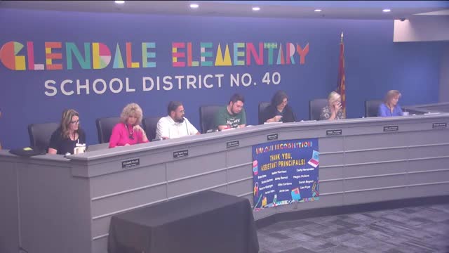The Glendale Elementary School District Governing Board on April 10 approved a package of employee recommendations and a 6% pay-for-performance increase for 2025-26, accepted the district's FY2024 audit and compliance questionnaire, approved a 2024-25 budget revision and multiple administrative hires, and recessed into executive session for legal advice on federal attestations.
