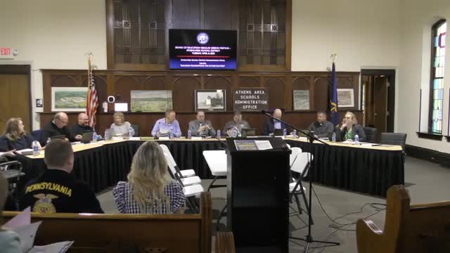 The Athens Area School District board heard a presentation and demonstration by the Athens Middle School FFA executive team and approved the chapter’s student motion—amended from an annual update to a biannual update—at the meeting.