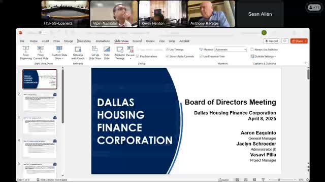 The City of Dallas Housing Finance Corporation voted to adopt a memorandum of understanding with Generation Housing Partners and approve formation of several DHFC‑owned limited liability companies to support a 200‑unit mixed‑income project at 4710 West Illinois Avenue.