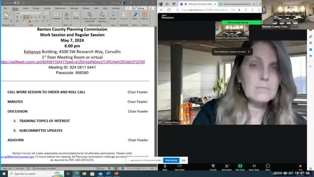 Benton County planning commissioners discussed procedures they would use if a complex land‑use application from Republic Services (doing business as Valley Landfill) is filed, including a proposed condensed sequence of public hearings and concerns about record management and jurisdictional background.