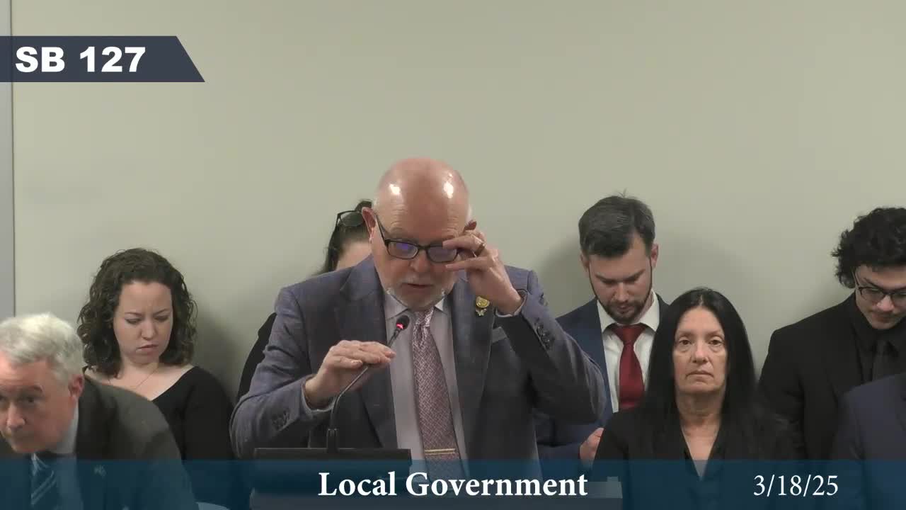 The Local Government Committee voted to pass Senate Bill 127 as amended, allowing uniform permitting across the state for a low-voltage security device installed inside commercial perimeter fences. The committee recorded a 10-1 vote in favor of the amended bill.