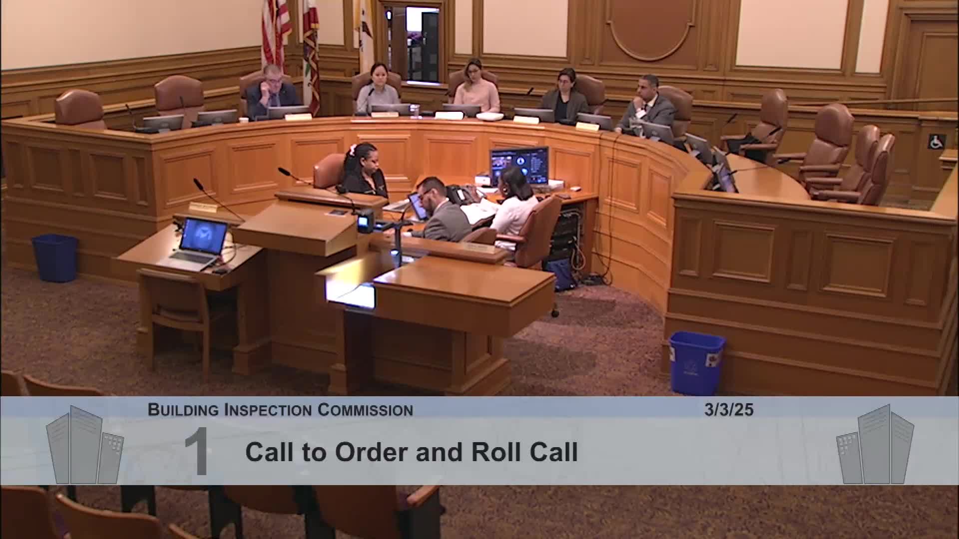 The San Francisco Building Inspection Commission unanimously approved a rules amendment March 3 requiring appellants seeking extensions under Section 41.23 to submit pre-hearing statements and supporting documents at least 14 days before scheduled hearings.