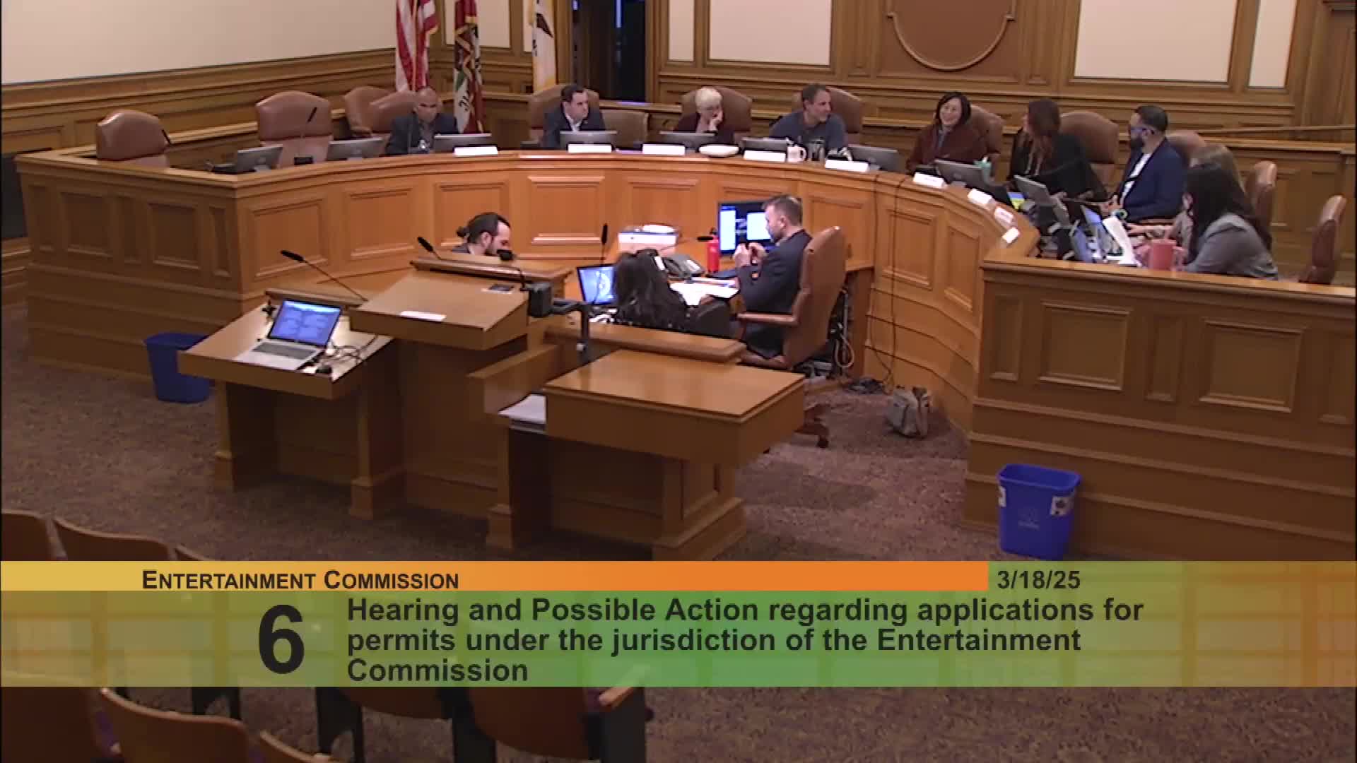 Commissioners asked about visible sound monitors, DJ vetting and neighborhood outreach; the applicants said limiters and visible monitors will be used and that they have posted contact information and signs. After public comment—there were no objections—the commission voted to approve the permit with staff recommendations. President Bridal, Vice President Wong, Commissioner Davis, Commissioner Perez, Commissioner Poggio, Commissioner Schlander and Commissioner Thomas voted aye.