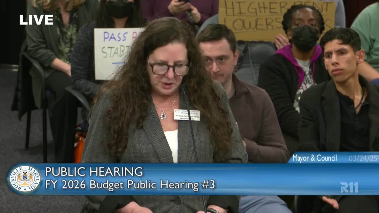 Representatives from several nonprofit and volunteer organizations told the Rockville Mayor and Council on March 24 that city grant funding supports critical services and asked the council to sustain or increase FY2026 allocations.