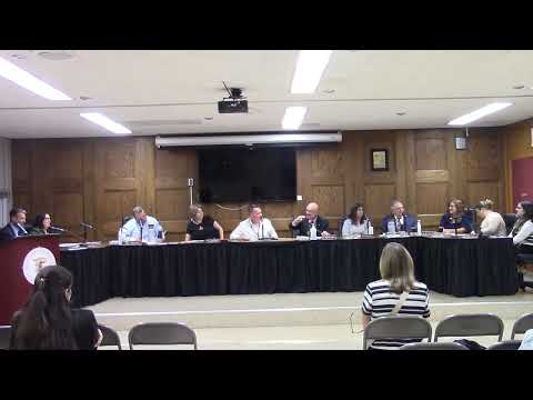 Student board member Valentina gave a report on elementary-school playground ribbon cutting, a planned school museum space, anti-bullying activities, upcoming spirit week and homecoming events across Kings Park schools.