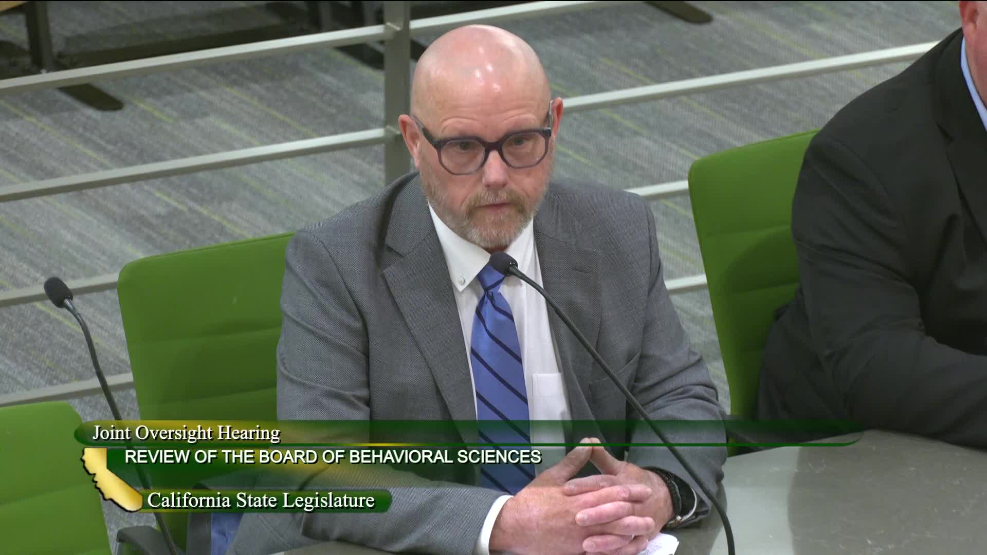Dr. Leah Tate, president of the California Board of Psychology, told the joint sunset review committees the board is considering a statutory change to allow access to psychotherapist records for some board investigations and urged legislators to weigh the costs and investigatory delays created by civil subpoenas.