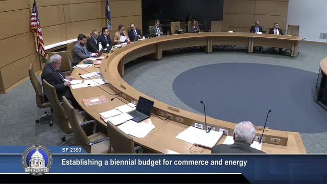 Sen. Zhuang (committee presiding) and Department of Commerce officials presented Senate File 2393, the budget vehicle for energy portions of the Commerce Department, during the March 19 hearing. Commissioner Polish told the committee the department seeks operating increases and programmatic investments, including a $500,000-a-year request to support a new Petro Fund database and programmatic work, plus a proposed $3 million operating adjustment over the biennium.