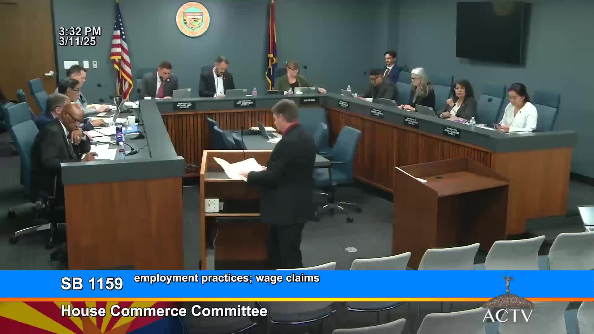 The Arizona House Commerce Committee on Tuesday gave Senate Bill 1159 a unanimous due-pass recommendation, agreeing to raise the monetary limit for unpaid-wage claims filed with the Industrial Commission of Arizona (ICA) from $5,000 to $12,000.