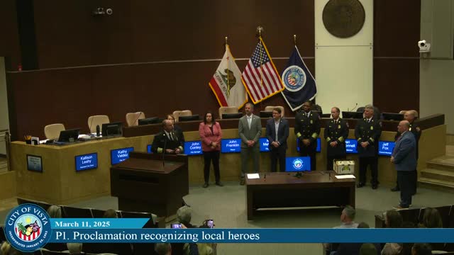 The Vista City Council declared March 9–15, 2025 MS Awareness Week and heard from Melinda Thrasher of the National Multiple Sclerosis Society Pacific South Coast chapter about local services and fundraising efforts.