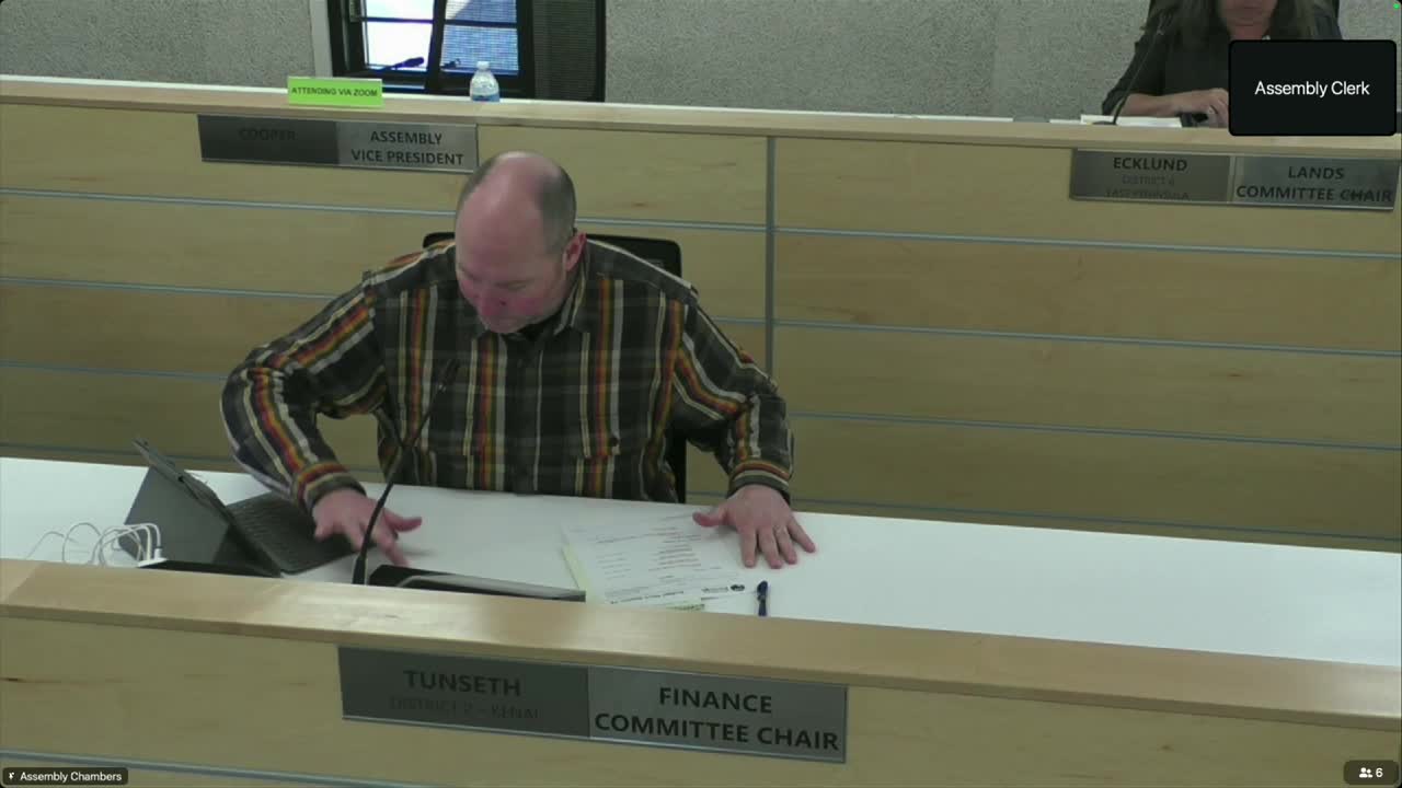 Borough Assessor Adena Wilcox told the assembly the assessing office is on a five-year reinspection cycle, that informal and formal appeals fell this year, and that the department seeks more funding mainly for notice printing, software maintenance and computer replacements.