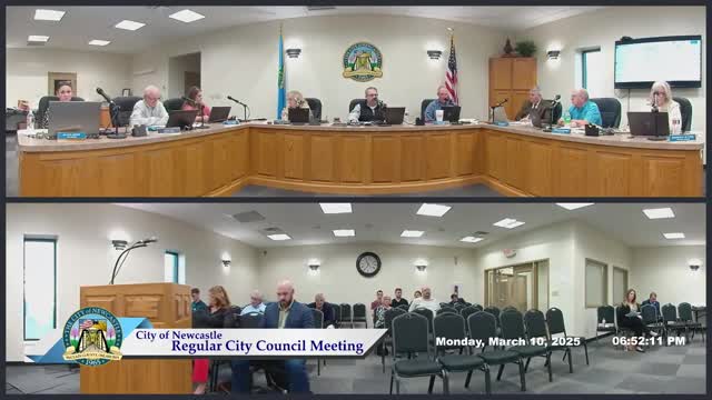 The Newcastle City Council approved a real estate purchase agreement for a property at 1880 Northeast 16th Street from Peoples Bank & Trust Company, along with certain on-site trucks and equipment, at a council-recorded purchase price near $990,000.