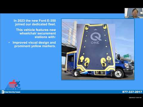 Key program details presented - Eligibility and recertification: Francis said applicants generally must attend an in‑person assessment; full‑eligibility documentation is reviewed and most continuing eligibilities require documentation every five years. - Vehicles and capacity limits: Francis said contracted providers include lift‑ and ramp‑equipped vans, SUVs and taxis; she stated vehicles cannot accommodate wheelchairs or scooters wider than 33 inches, longer than 51 inches, or that weigh more than 800 pounds when occupied. She also described new Ford E350 vehicles with improved tie‑down hardware. - Fares and Omni transition: Francis said the program is transitioning from the MetroCard to the MTA Omni card, introduced December 2024. The Access‑A‑Ride Omni ID combines photo ID and fare/payment capabilities; Francis said cardholders who qualify for a personal care attendant (PCA) designation will have a PCA ride free and that additional companions pay the normal fare. The presentation described 0‑fare taps for eligible customers on subways and local buses (four per day) and that Omni funds can be loaded online or at retail locations. - Reservations and day‑of operations: Francis told the committee that customers should call prompt #3 or use the app on the day of travel to obtain trip status, and that on‑line booking, an app and IVR/text alerts are available to track vehicles. - Performance numbers presented by the MTA: Francis said Access‑A‑Ride met or exceeded internal KPIs for 2024, listing growth in total trips and ridership (figures given in the presentation), a primary 30‑minute pickup on‑time performance above 96% (surpassing a 94% target), a 20‑minute pickup performance of 92%, an 85% trip completion rate by vendors, and less than 3% no‑shows by providers.