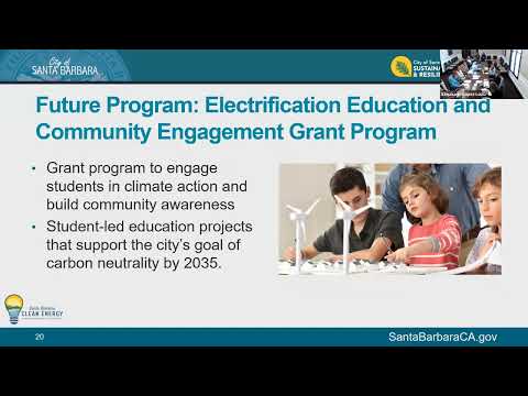Holmes said SBCE is also planning an HVAC heat‑pump offering modeled on the heat‑pump water‑heater incentive (tiered income‑qualified rebates, faster permitting) and an electrification education grant program to fund community projects. She said SBCE plans to offer a bilingual concierge service to help customers navigate incentives, permitting and contractor questions.