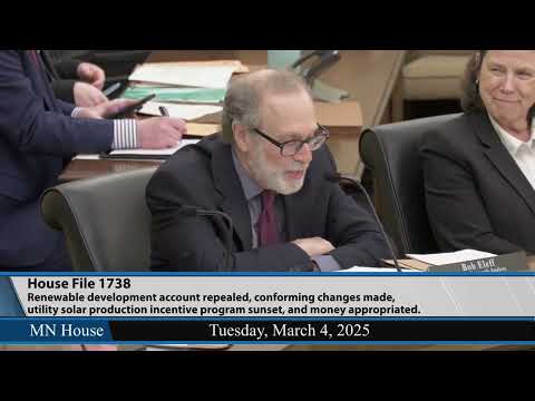 The RDA’s history and recent uses were a central part of the hearing. Legislative staff and historical testimony described the account’s origin in a 1994 compromise tied to additional dry cask storage at Prairie Island and Monticello, and its evolution into a funding source for grants, incentives and programs including solar rebates, biomass research, and community energy projects. Legislative counsel Mr. Eloff summarized the account’s early mechanics, noting that from 2001 to 2010 about $165 million had been contributed and that the fund had supported roughly 200 grants, with a median award near $245,000.