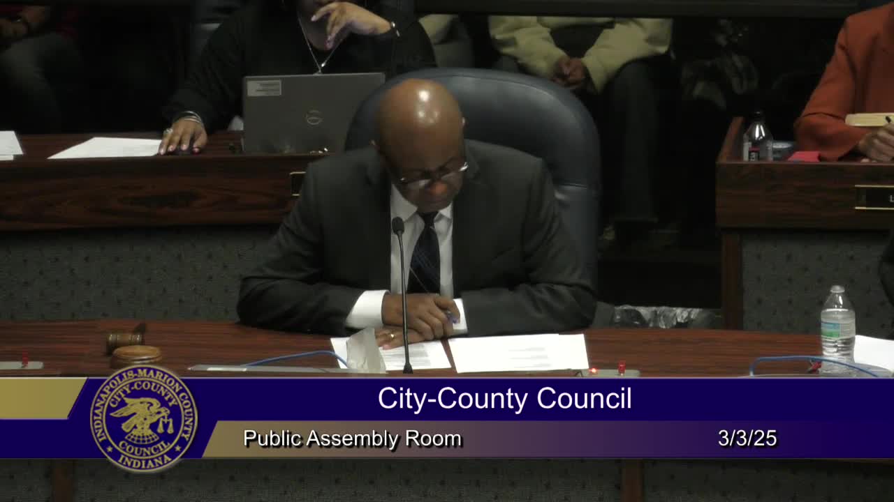 The Indianapolis City-County Council on March 3 approved a slate of mayoral appointments, budget and miscellaneous local measures, confirmed several rezonings, and tabled one proposal; most measures passed with unanimous or lopsided margins recorded in the meeting transcript.