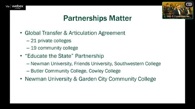 Matt Lindsey, president of the Kansas Independent College Association, said independent nonprofit colleges serve nearly 23,000 students — about 12% of college students in Kansas — and urged predictable, forward‑funded appropriations for the Kansas Comprehensive Grant, the state’s need‑based aid program. Lindsey asked the committee to continue using the comprehensive grant as the primary tool for affordability and to restore the prior practice of including next fiscal year student‑aid funding in the current budget so institutions can make offers to students with known aid levels.