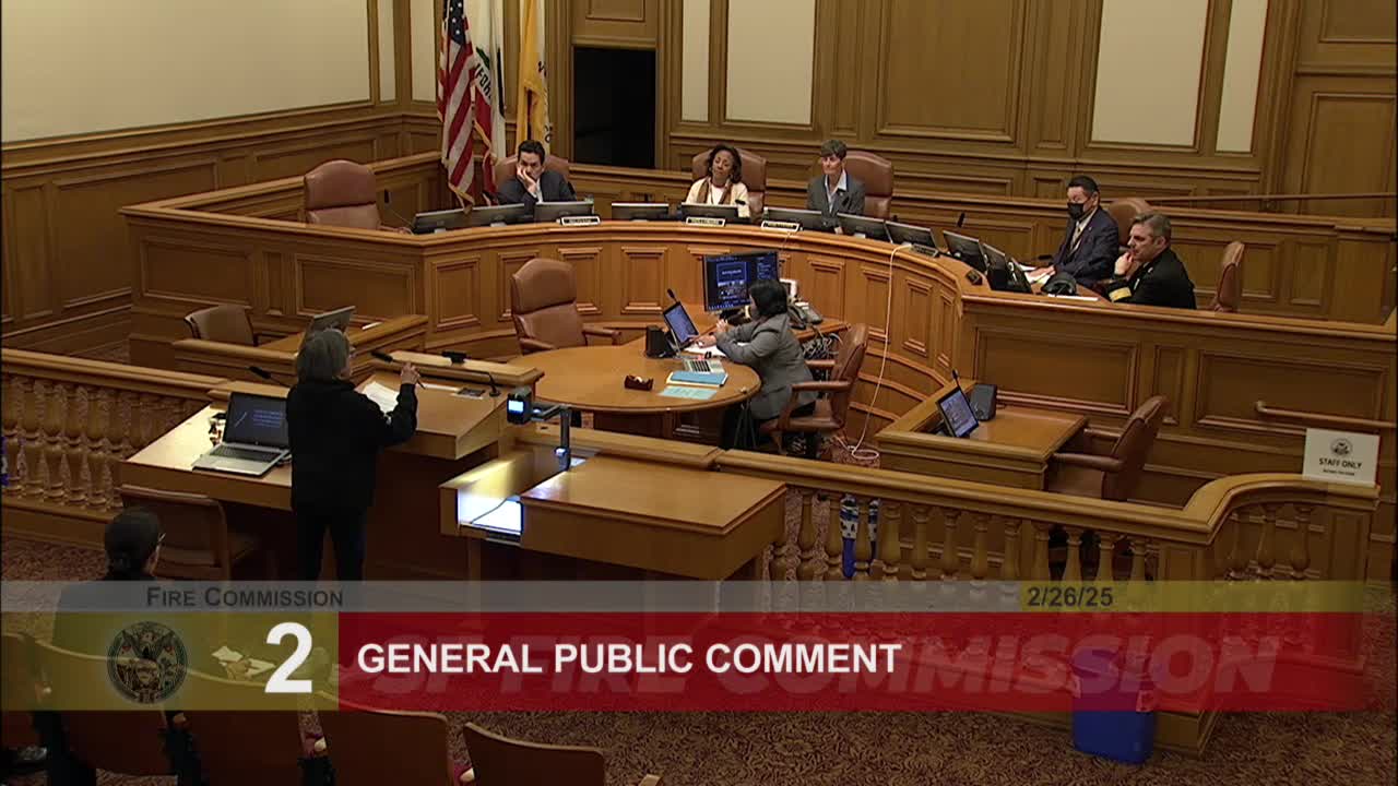 The commission took no immediate formal action on the public comments during the meeting. Commission members acknowledged the remarks; Chief Dean Crispin later told attendees the department is lobbying to relocate piping in the Sunset so streets can function as fire breaks and said staff are working with community groups on hydrant and water‑supply improvements in affected neighborhoods.