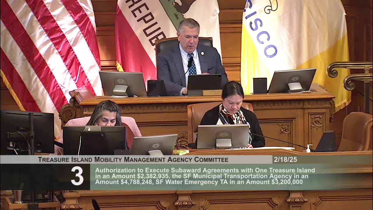 On Feb. 18, 2025, the Treasure Island Mobility Management Agency Committee voted to accept the agency’s fiscal year 2024 audit, which auditors issued with an unmodified opinion and no findings.