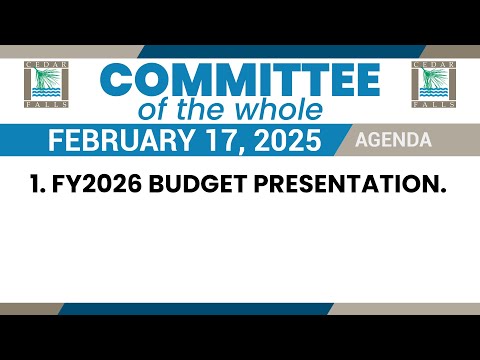 The City of Cedar Falls Committee of the Whole on Monday recommended that City Council set a proposed maximum property tax levy of $12.50 per $1,000 of assessed value for fiscal year 2026 and scheduled a special public hearing for April 7 at 5:15 p.m.