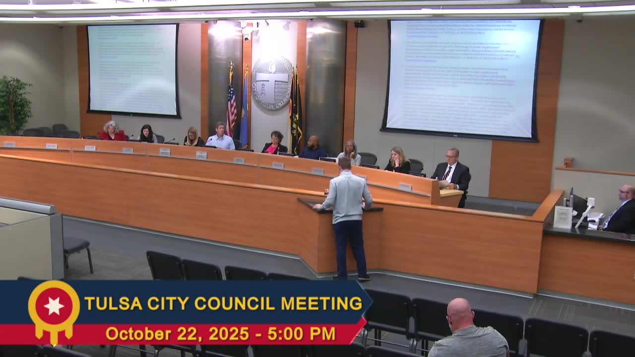The Tulsa City Council approved supplemental budget appropriations tied to recent and prior GO bonds and an ordinance adding a juvenile curfew with an emergency clause; public commenters criticized bond spending and urged reconsideration of curfew timing and enforcement.