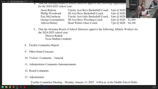 No formal board action was taken on facilities items at the meeting; the report was informational and committee members said they will move forward with scheduling and procurement as planned.