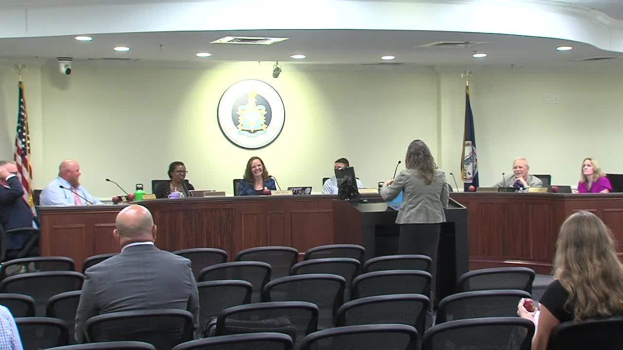 At the Oct. 7 meeting Harrisonburg City School Board recognized Farm to School Week and National School Lunch Week preparations, with School Nutrition director Heather Yutze highlighting local sourcing (Showalter's Orchard) and students from the Rock City Regiment receiving applause for recent competition results.
